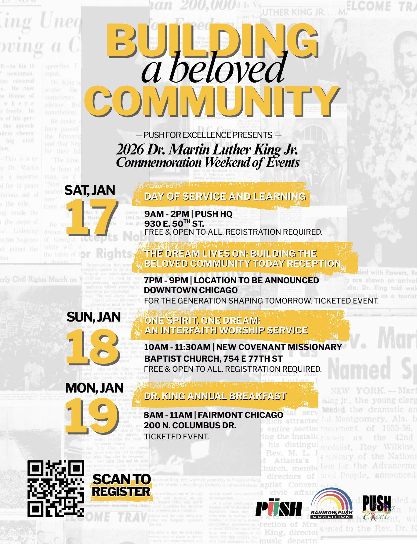 Join us for PUSH Excel’s annual Dr. Martin Luther King Jr. Commemoration Weekend as we come together under the theme “Building a Beloved Community,” inspired by Dr. King’s vision of a society rooted in justice, love, and belonging.